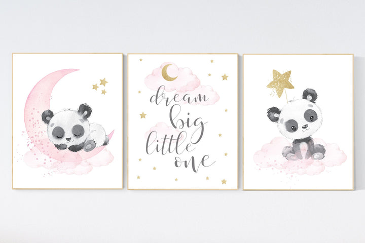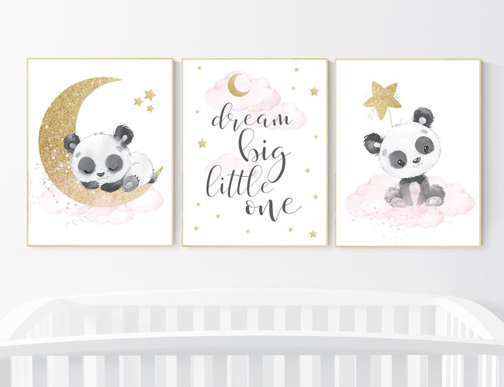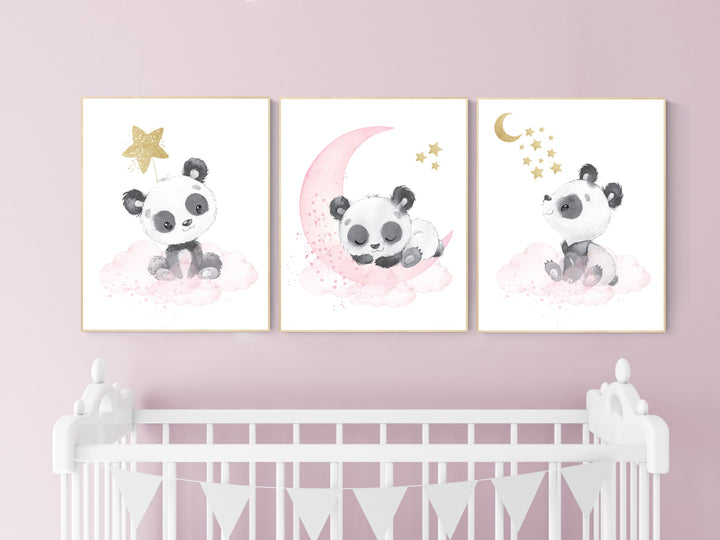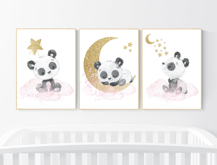 Nursery decor girl, panda nursery, pink and gold nursery wall art, panda nursery print, nursery decor animal, girl nursery wall decor, panda