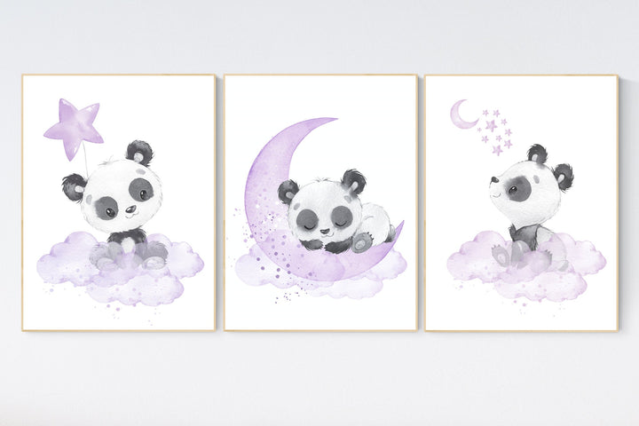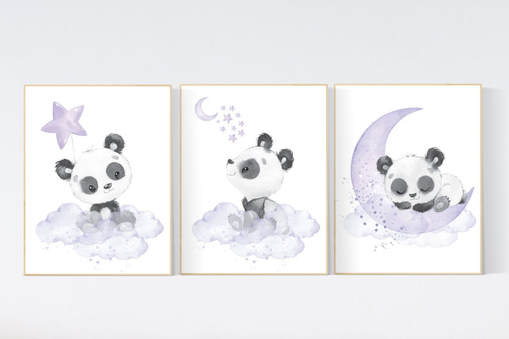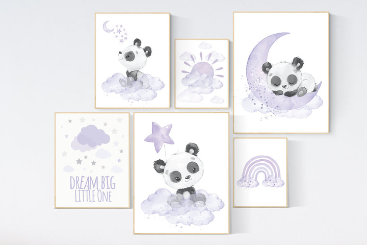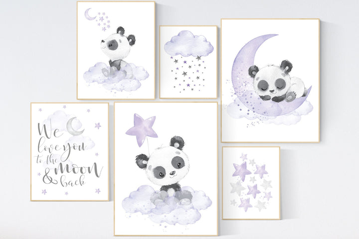 Nursery decor girl, panda nursery, purple and gray nursery wall art, panda nursery print, nursery decor animal, lilac, lavender, purple