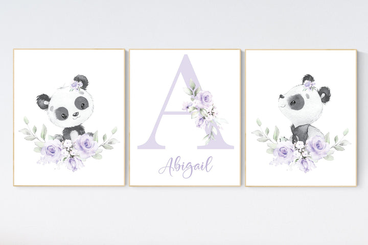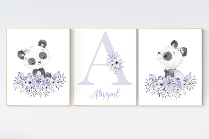 Nursery decor girl, panda nursery, lilac nursery, purple nursery, floral, nursery decor animal, girl nursery, flower nursery, name nursery