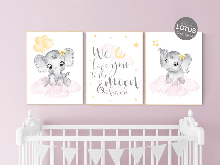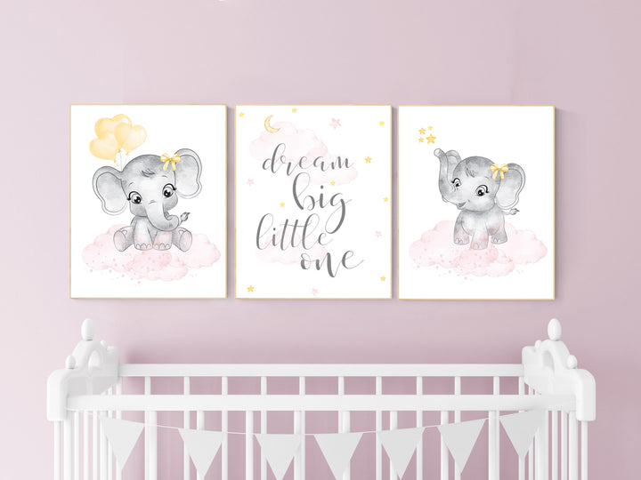 Nursery decor girl, pink and yellow, Elephant nursery, nursery wall art elephant, girl nursery decor, girl nursery, pink yellow