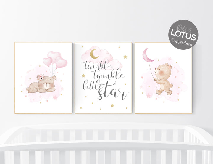 Nursery decor girl, pink and gold, bear nursery, girls room decor, animal nursery, twinkle twinkle little star, pink gold nursery, girl