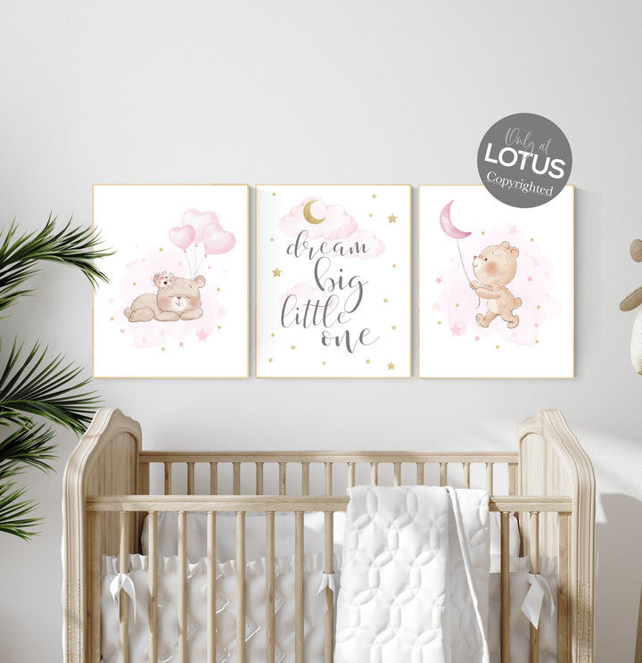 Nursery decor girl, pink and gold, bear nursery, girls room decor, animal nursery, dream big little one, pink gold nursery, girl nursery