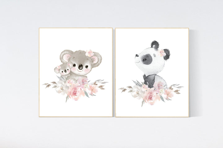 Nursery decor girl, panda nursery, koala nursery, blush pink, nursery wall art, floral nursery, nursery decor animal, girl nursery