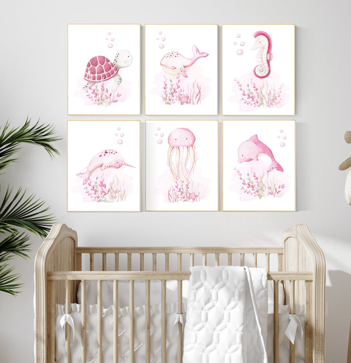 Nursery decor girl, ocean nursery, under the sea nursery, Under the sea wall art, pink nursery, girls room decor, sea nursery decor