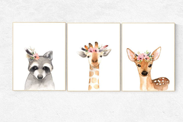 Nursery decor girls, Nursery prints woodland, animal flower crown, nursery prints animals, nursery decor girl flower, nursery decor flower