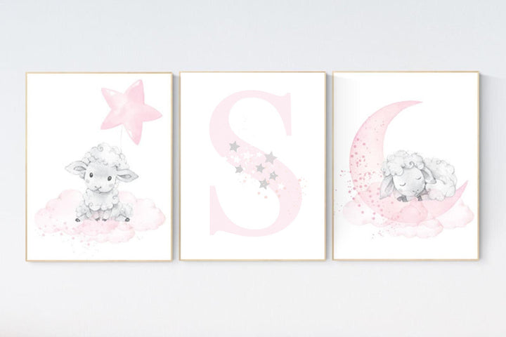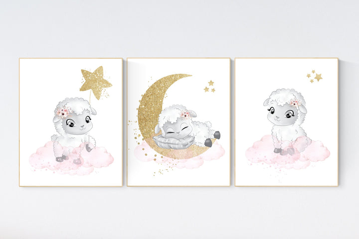 Nursery decor girl, Sheep nursery decor, nursery decor lambs, girl nursery wall art, nursery wall art sheep, moon and cloud, girls room