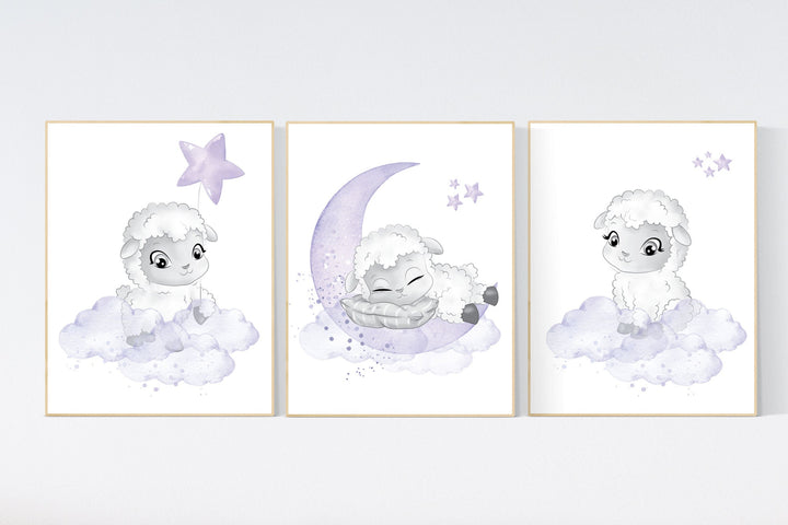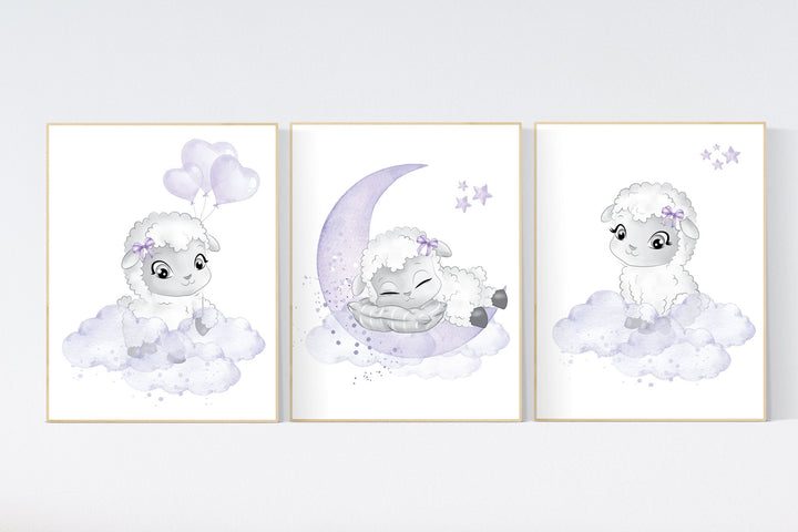 Nursery decor girl, Sheep nursery decor, purple nursery, Nursery decor girl, nursery wall art sheep, lavender nursery, girl nursery prints