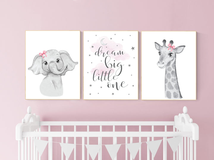 Nursery decor girl, pink nursery, nursery decor elephant, nursery prints girl, baby room wall art, pink and gray nursery, girls room decor