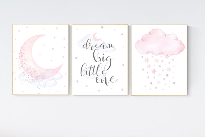 Nursery decor girl, purple and pink, lilac and pink, nursery wall art, baby girl nursery, moon and stars, moon nursery, dream big little one
