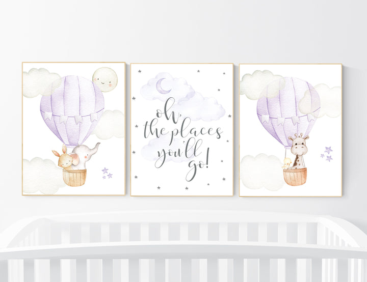 Nursery decor girl, purple nursery, hot air balloon nursery, oh the places you'll go, animal nursery, girl nursery wall art, girls room