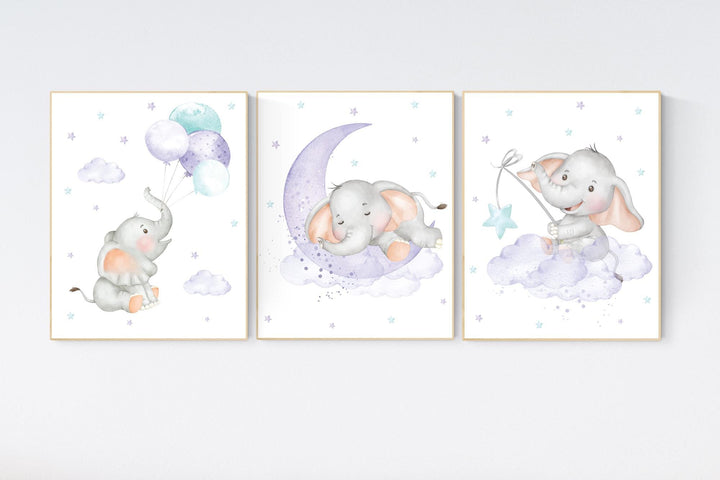 Nursery decor girl, purple teal, elephant nursery decor, lilac nursery print, lavender, baby room decor, nursery wall art, elephant print