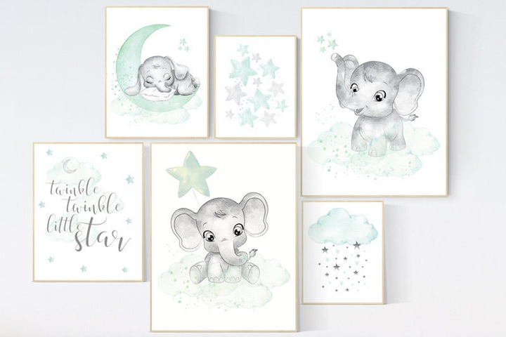 Nursery decor mint, gender neutral nursery, elephant nursery, twinkle twinkle little star, nursery wall decor, twin nursery, unisex