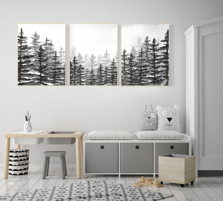 Nursery decor mountain, grey nursery, gender neutral, woodland nursery, adventure theme nursery, gray nursery, forest nursery, mountains