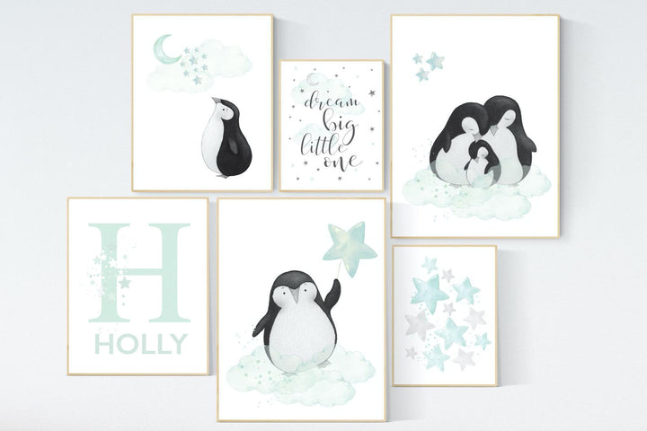 Nursery decor mint, mint green nursery, penguins, penguin, gender neutral nursery, mint green nursery wall decor, animal prints, wall decor