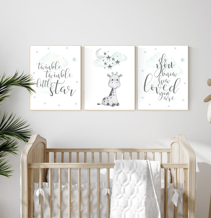 Nursery decor mint, gender neutral nursery, giraffe nursery, twinkle twinkle little star, animal prints, mint green nursery, gender neutral