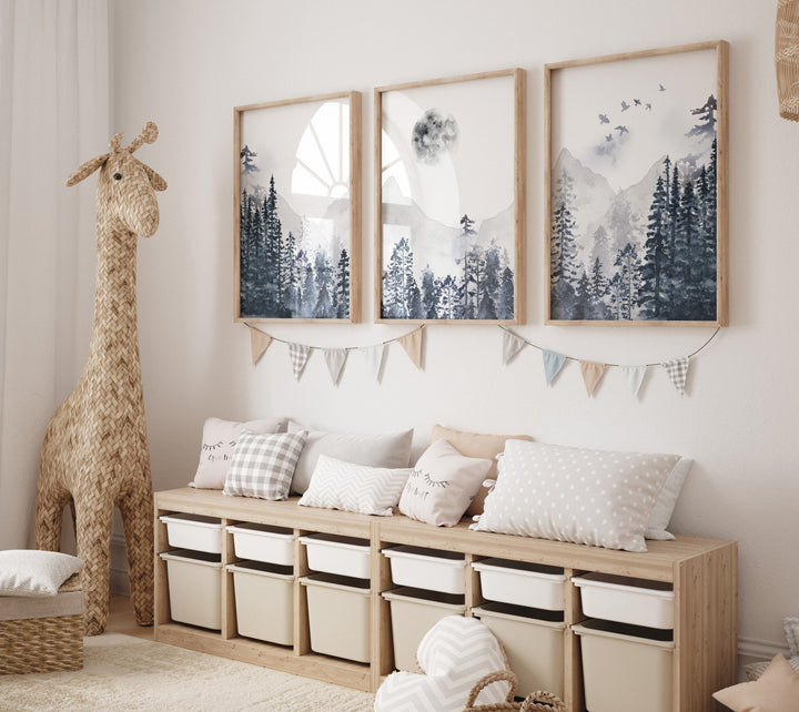 Nursery decor mountain, navy nursery, gender neutral, woodland nursery, adventure theme nursery, navy blue nursery, forest nursery mountains