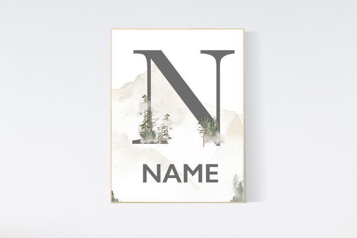 Nursery decor mountain, nursery wall art, tree nursery decor, adventure theme nursery, forest, sage green, beige, woodland nursery