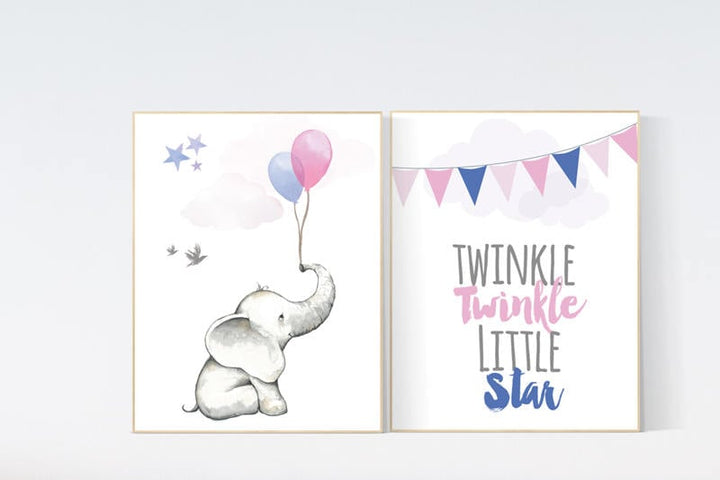 nursery decor navy and pink, twinkle twinkle little star, nursery decor elephant, animal prints, elephant baby room, pink navy nursery