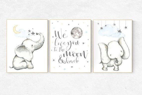 Nursery decor neutral, Elephant decor for nursery, Twinkle Twinkle Little Star, nursery prints elephant, elephant nursery, kids room, animal