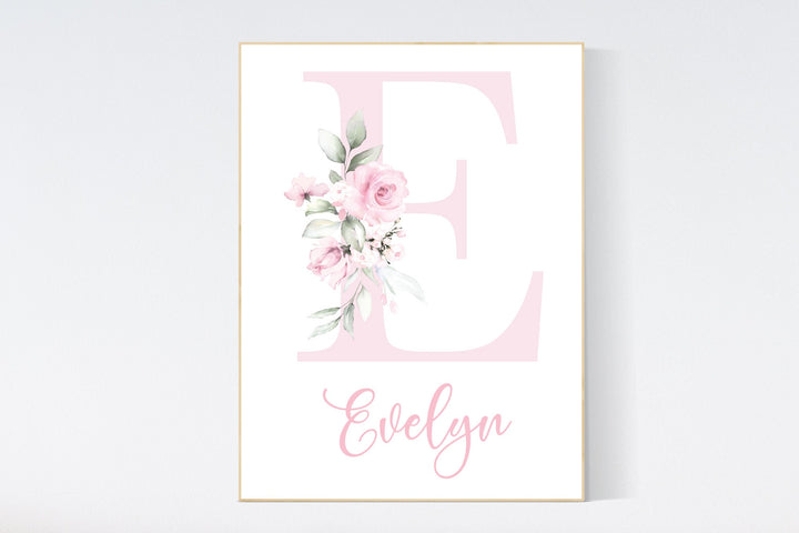 Nursery decor name, pink flower nursery decor, Nursery decor girl, nursery decor girl name, pink nursery, floral nursery, name nursery art