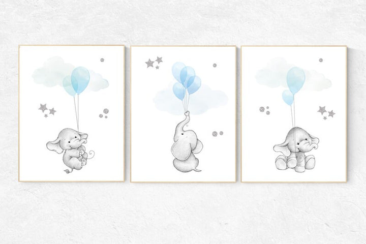 Blue and gray nursery decor, blue silver nursery decor elephant, animal prints, nursery decor boy elephant, baby room, blue silver nursery,