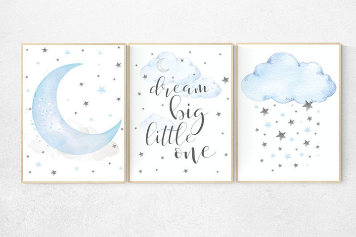 Blue and gray, Nursery decor boy, nursery decor, boys room decor, dream big little one , clouds and stars, blue grey nursery, cloud nursery