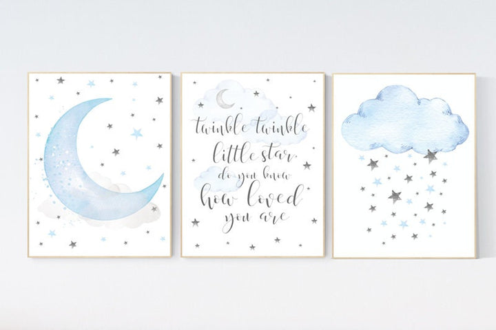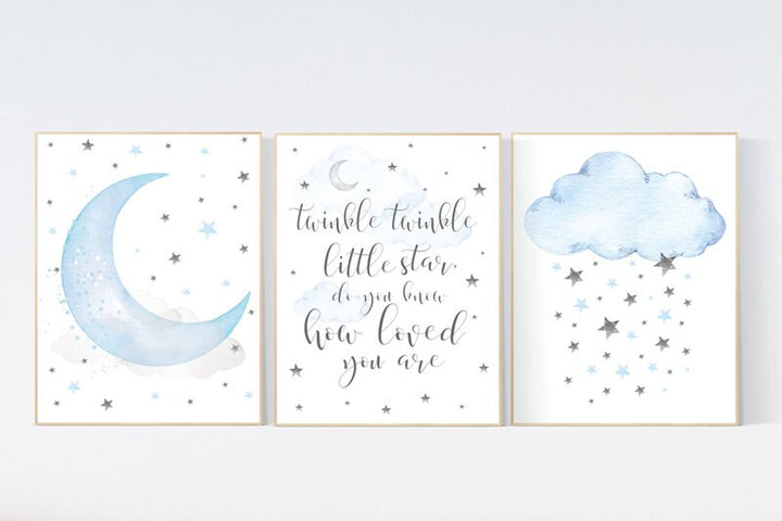 Blue and gray, Nursery decor boy, nursery decor, boys room decor, twinkle twinkle little star, clouds and stars, blue grey nursery, cloud