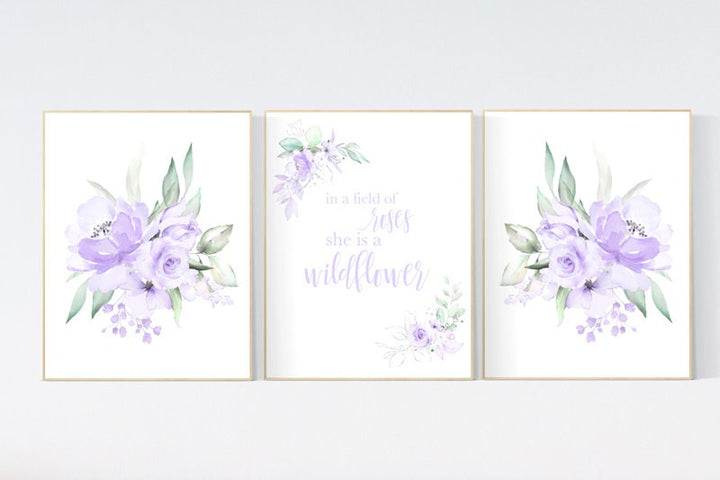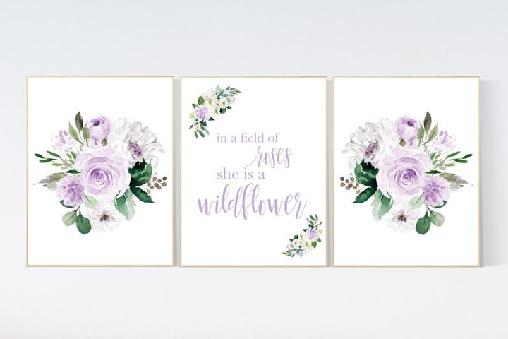 Nursery decor purple, Nursery decor girl purple, in a field of roses she is a wildflower, lavender nursery, lilac nursery, girls room