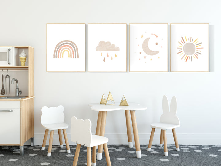 Nursery decor rainbow, neutral Rainbow Wall Art, rainbow Print Set, Cloud Rainbow Sun, Rainbow