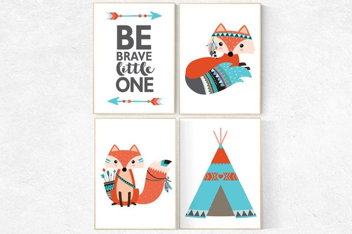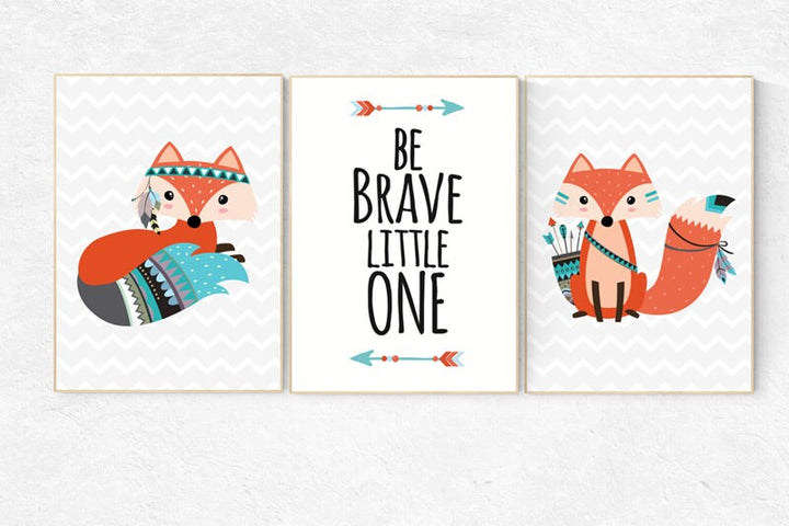 Nursery decor woodland, fox nursery decor, be brave little one, tribal nursery decor, woodland nursery, fox print, Woodland Animal Nursery