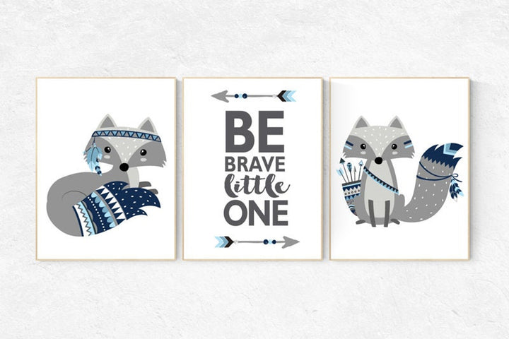Nursery decor woodland, fox nursery art, be brave little one, tribal nursery, navy grey, woodland nursery wall art, Woodland Animal