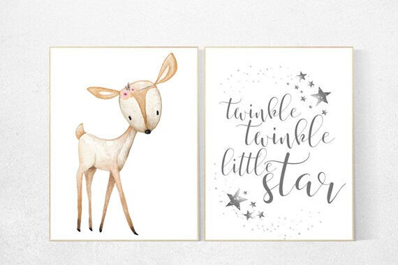 Nursery decor woodland, deer nursery decor, twinkle twinkle little star, tribal nursery, woodland nursery, deer print, Woodland Animals