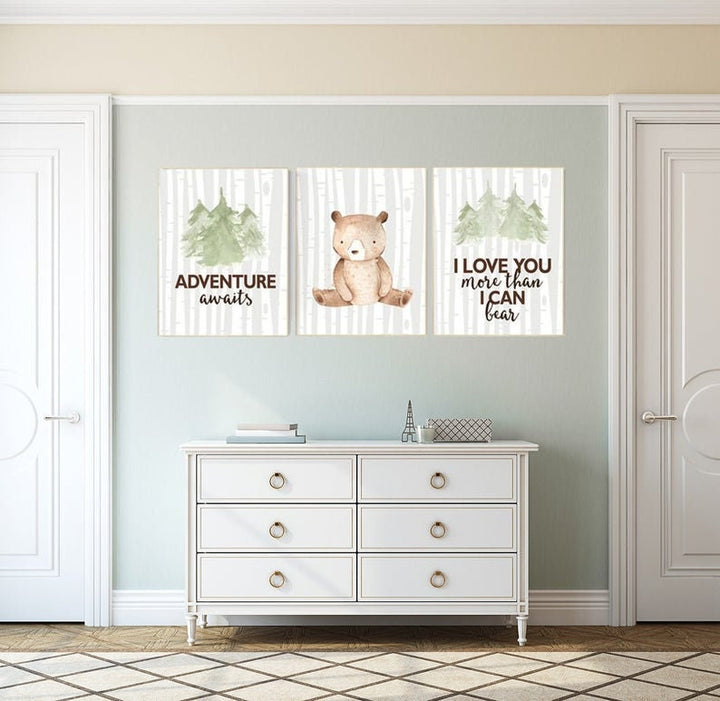 Nursery decor woodland, bear nursery, i love you more than i can bear, Woodland Nursery Wall Art, Woodland Print Set, Woodland Animal Prints
