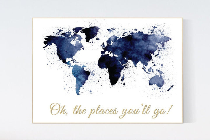 Nursery decor travel, Navy blue, gold world map, world map nursery decor, nursery world map, nursery decor boy map, navy nursery, world map