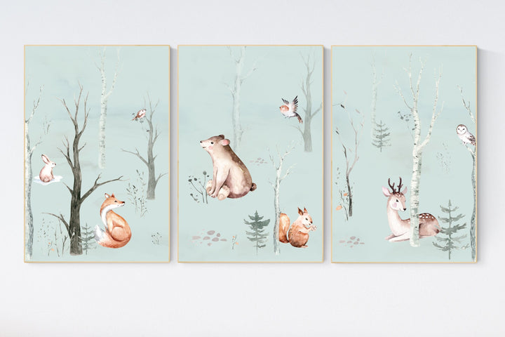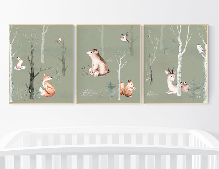 Nursery decor woodland animals, gender neutral, Woodland Nursery Wall Art, Woodland animal prints, forest, animal nursery, green nursery