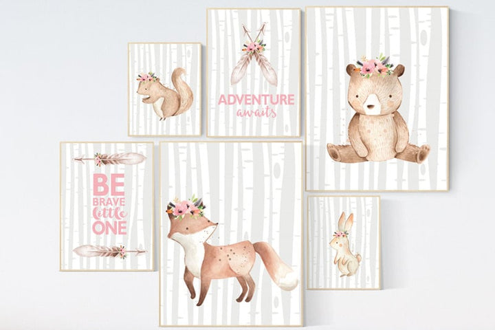 Nursery decor woodland, nursery decor girl woodland, nursery wall art woodland animal, nursery decor neutral, girl nursery decor woodland