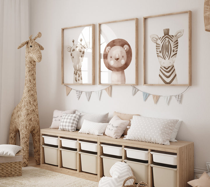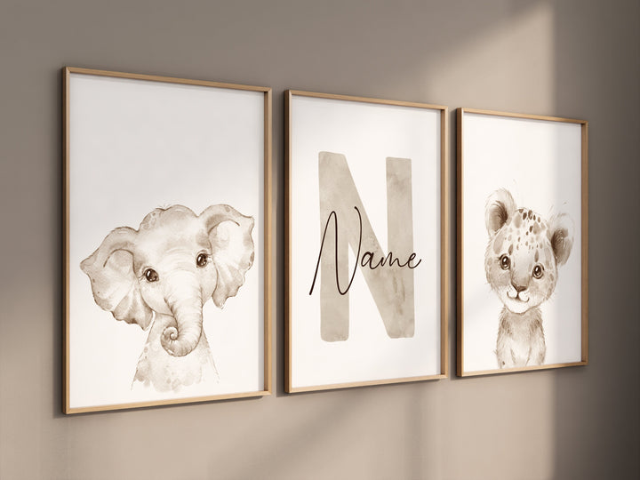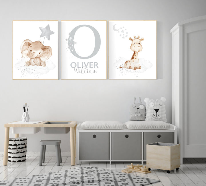 Nursery wall art animals, beige nursery, gender neutral nursery, neutral nursery, baby room decor, bear, giraffe, name nursery, neutral