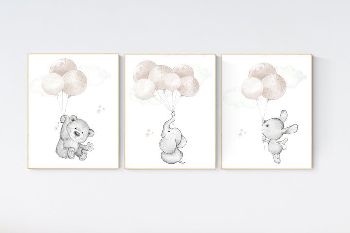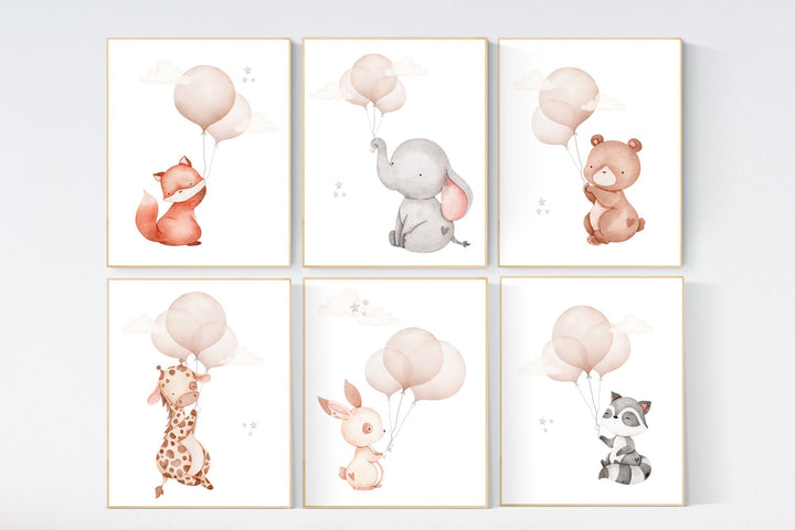 Nursery wall art animals, gender neutral nursery, neutral nursery, baby room decor, bear, elephant, giraffe, animal prints, balloon animals