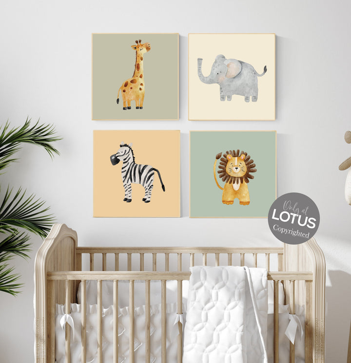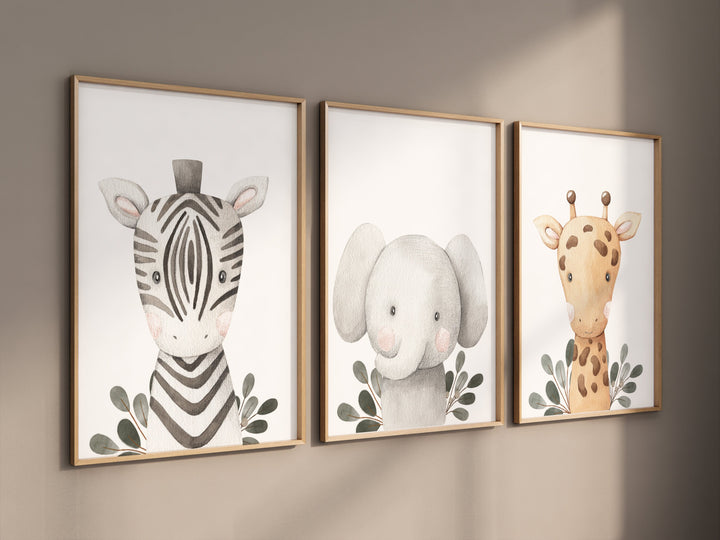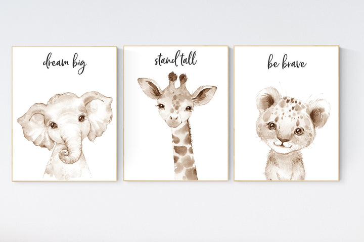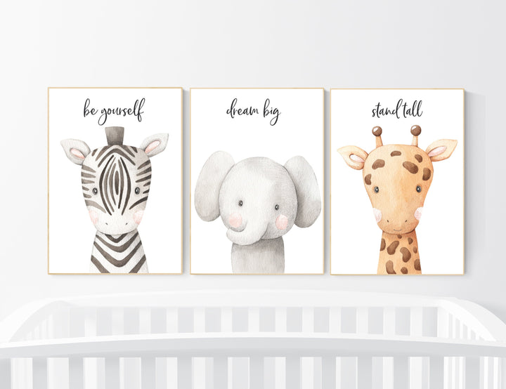 Nursery wall art animals, gender neutral nursery, neutral nursery, baby room decor, elephant, giraffe, animal prints, neutral nursery