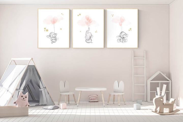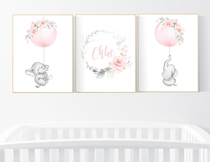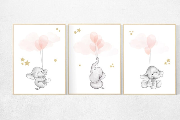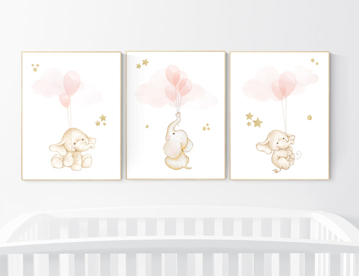Nursery wall art girl, Blush pink nursery decor, blush gold nursery, nursery decor elephant, peach nursery, blush nursery, animal balloon