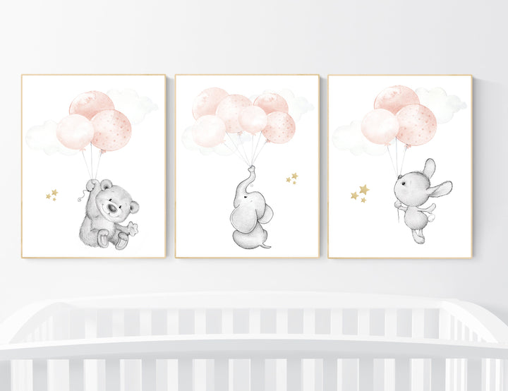 Nursery wall art girl, Blush pink nursery decor, blush gold nursery, nursery decor elephant, bear nursery, blush nursery, bunny nursery
