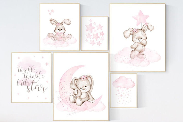 Nursery wall art girl, Rabbit nursery print, Nursery decor girl bunny, nursery print set girl, Bunny wall art, Bunnies nursery print set