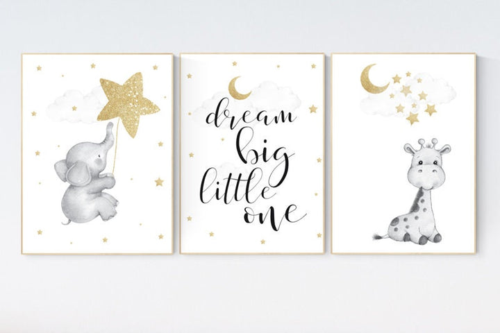 Nursery wall art gold, gold gray nursery, nursery decor neutral, baby room decor girl, moon and stars, baby room decor, giraffe nursery