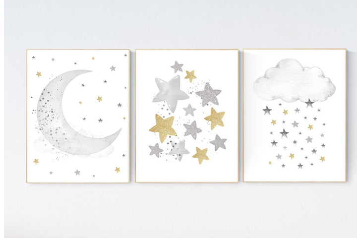 Nursery wall art grey, gray gold nursery, nursery decor neutral, baby room decor gender neutral, moon and stars, grey gold, baby room art