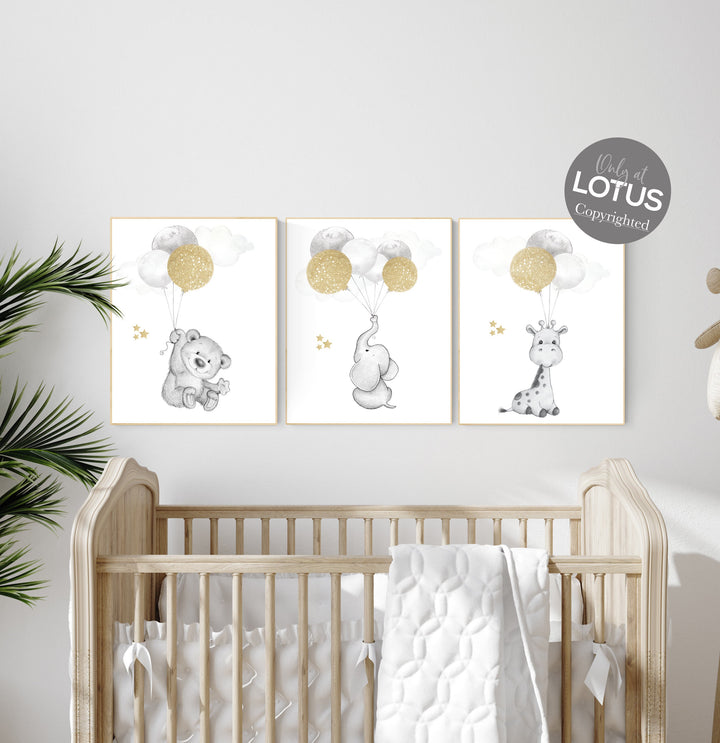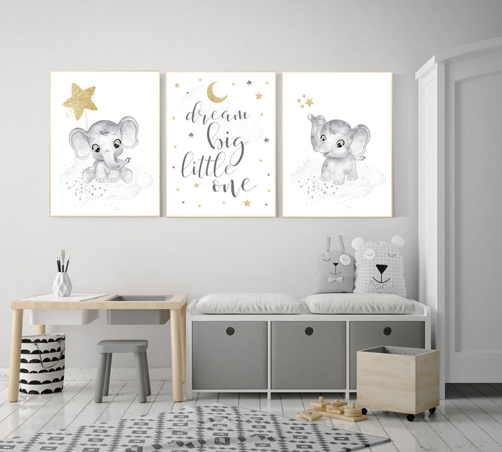 Nursery wall art grey, gray gold nursery, elephant nursery, nursery decor neutral, gender neutral