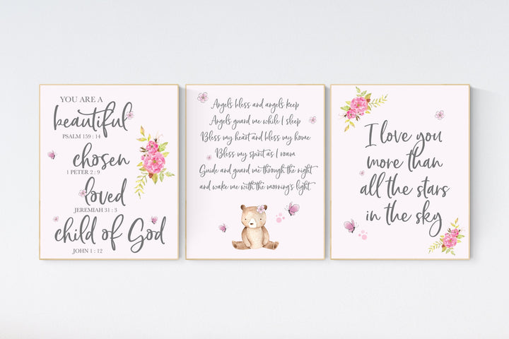 Nursery wall art girl, pink nursery, quote prints, woodland animals, pink nursery wall art, girl nursery decor, nursery quotes