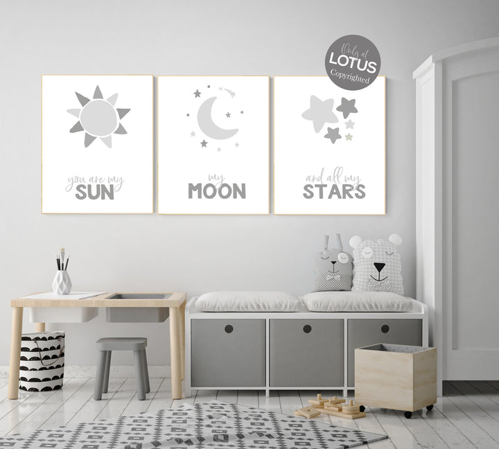 Nursery wall art grey, gender neutral nursery, baby room decor gender neutral, You Are My Sun My Moon And All My Stars, gray nursery