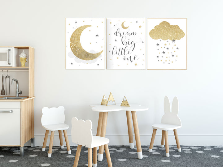 Nursery wall art gold gray, gender neutral nursery, gold nursery, moon and stars, baby room decor, gender neutral nursery ideas, grey