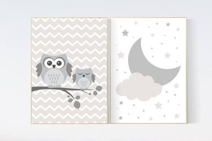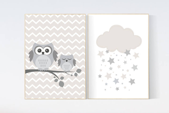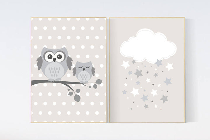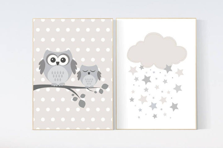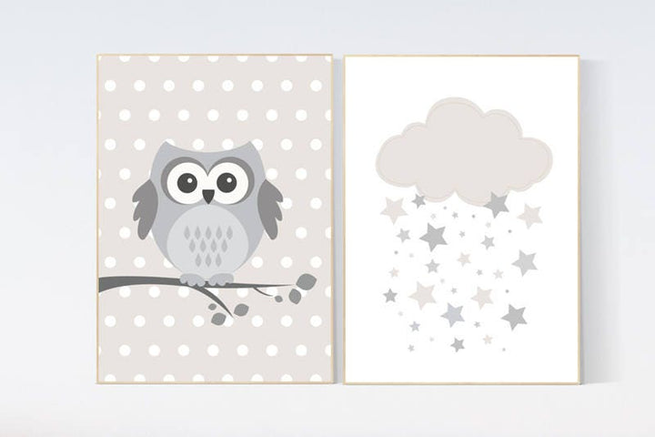 Owl nursery decor, gender neutral nursery, owl decor for nursery, beige and cream, cloud Nursery Decor Gray Beige gender neutral baby shower