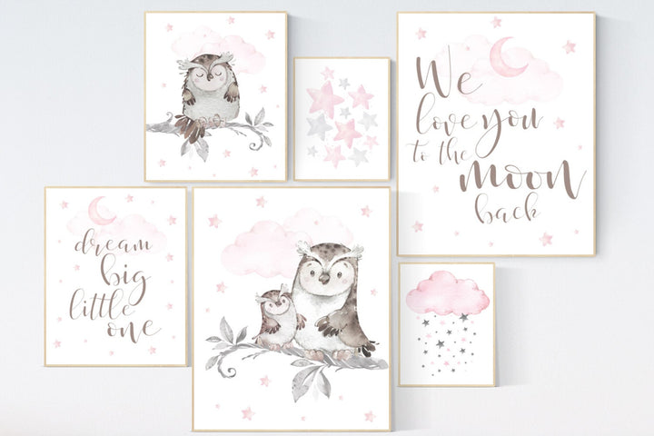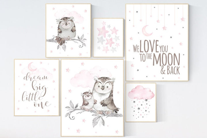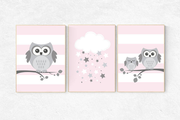 Owl nursery wall art, baby girl room decor, Pink nursery decor, owl nursery decor, baby girl nursery decor, nursery girl decor, nursery girl